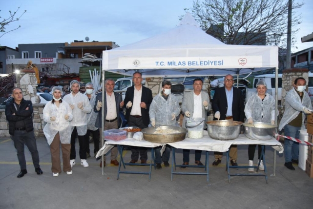 Bereket sofrasına ortak olmak isteyen yurttaşlara yemekleri, Milas Belediye Başkanı Muhammet Tokat, belediye meclis üyeleri ve yemeğin düzenlenmesine katkı sunan Remzi Ozan tarafından dağıtıldı.