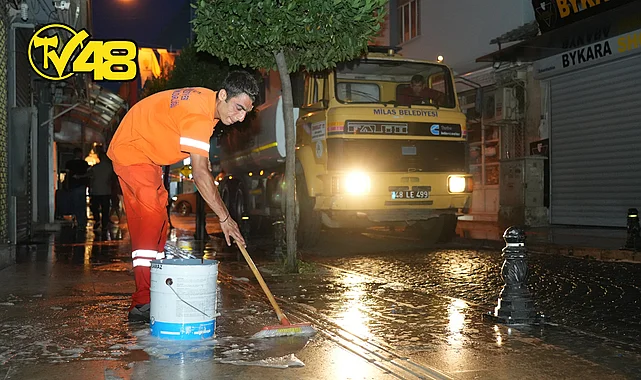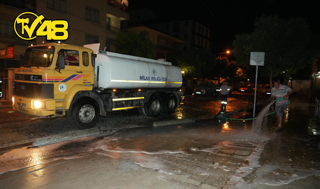 Bir yandan günlük temizlik faaliyetlerini aksatmadan devam eden ekipler bir yandan da belirlenen program dahilinde Milas caddelerinde detaylı temizlik çalışması gerçekleştiriyor.