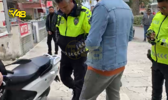 Milas merkezde kask takmayan motosiklet sürücüsü trafik polisleri tarafından durdurulup evrak kontrolü yapıldığında motosikletin sigortasız trafikte olduğu ortaya çıktı. Polis ekibinin motosikleti bağlayacağını öğrenen motosiklet sürücüsü trafik polis ekibine mukavemette bulundu.