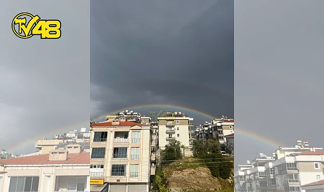 Milas'ta sağanak yağmurun ardından aynı anda görülen iki gökkuşağı şaşkınlık yarattı.