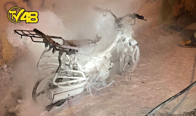 Muğla’nın Milas ilçesine bağlı Hocabedrettin Mahallesi Karacahisarlı Sokak’ta park halindeki bir motosiklet, henüz belirlenemeyen bir nedenle alev aldı.