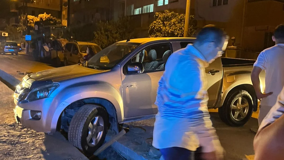 Akşam saatlerinde seyir halindeki bir araç, yol üzerinde bırakılan kazı alanını fark edemeyerek çukura girdi.