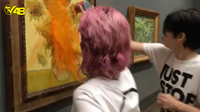 İngiliz Guardian gazetesinde yer alan habere göre, protestocular tablonun üzerine domates çorbası fırlattı.