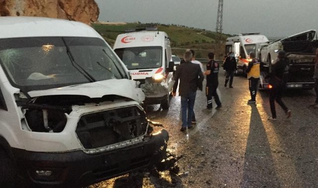 Adıyaman Malatya karayolunda minibüs ile çekicinin çarpışması sonucu 3 kişi yaralandı.