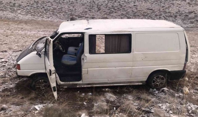 Minibüs kayganlaşan yolda takla attı, 1'i ağır 3 kişi yaralandı