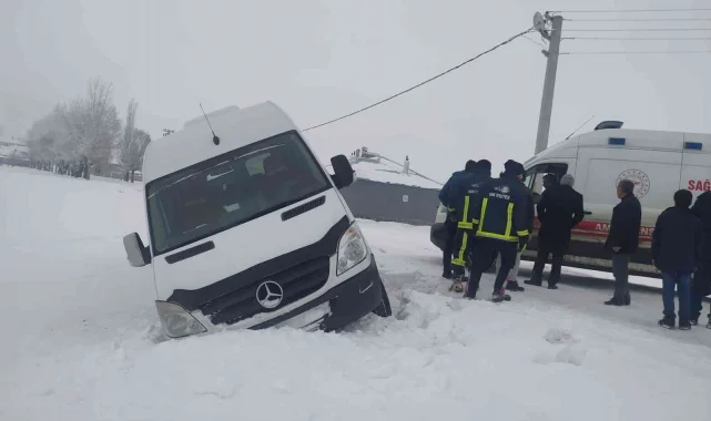 Van'ın Özalp ilçesinde kar yağışından dolayı kontrolden çıkan minibüs kara saplanırken, 1 kişi de yaralandı.