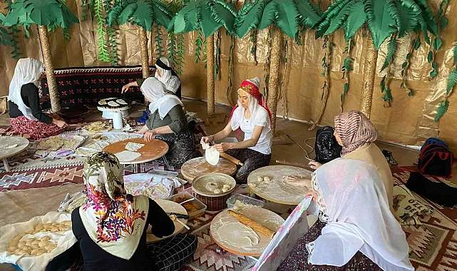 Batman'ın Gercüş ilçesinde anaokulu öğrencileri öğretmen ve velileri ile birlikte hamur açarak börek yaptı.