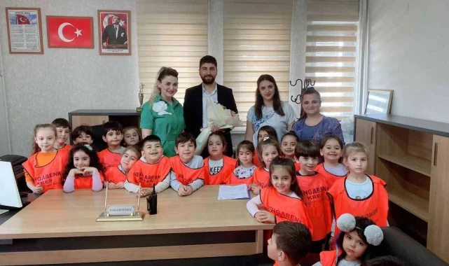 Kentte faaliyet gösteren Rengarenk Kreş ve Anaokulu öğrencileri ve yöneticileri '10 Nisan Polis Haftası' nedeniyle Emniyet Müdürlüğünde bulunan büroları ziyaret ederek polis amcalarının polis haftasını kutladılar.