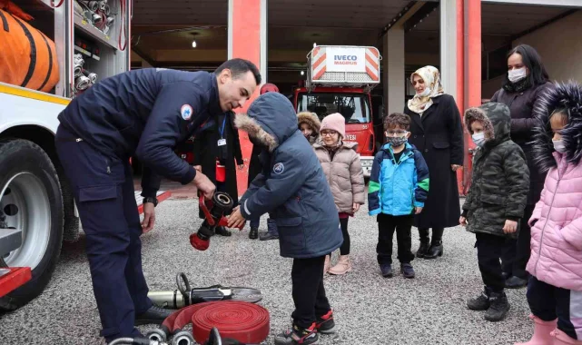 Düzce Belediyesi Çocuk Kulübü öğrencileri, İtfaiye Müdürlüğünün konuğu olarak itfaiyenin görevleri ve temel yangın eğitimi hakkında bilgi aldı. Minikler itfaiye hortumu ile yangınlara müdahale şeklini öğrendi.