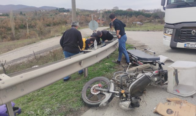 Orhangazi-Yalova karayolu Süpürgelik mevkiinde meydana gelen trafik kazasında bir kurye motosikleti kontrolden çıkarak bariyerlere çarptı. Bariyerleri aşan motosiklet sürücüsü ağır yaralandı.