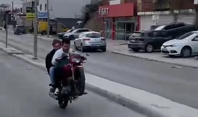 Hem kendilerini hem de trafiği tehlikeye düşürerek yolculuk eden motosiklet sürücülerinin o anları ile cep telefonu kamerasına yansıdı. Karabük'te bir başka görüntüde ise arkasında oturan arkadaşına rağmen motosikletini önünü kaldırarak ilerlemesi de cep telefonu kameralarına yansıdı.