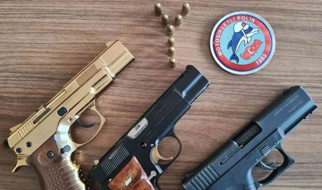 Motosikletli polis timleri 3 ruhsatsız tabanca ele geçirdi