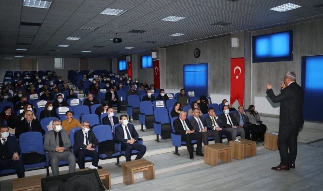 Halk Eğitimi Merkezi Müdürlüğü konferans salonunda yapılan toplantıya İl Milli Eğitim Müdürü Bilal Gür, milli eğitim müdür yardımcıları, şube müdürleri ve eğitim kurumu müdürleri katıldı. Burada konuşan Müdür Gür, 2021-2022 eğitim öğretim yılının ikinci döneminin öğrenciler, öğretmenler ve yöneticiler için hayırlı ve başarılı olması temennisinde bulundu. Gür, "Valimizin riyasetinde, sizlerin de gayretlerinizle eğitimde her geçen gün daha iyiye gidiyoruz. Öncelikle, ilimizin genelinde başlattığımız eğitim seferberliğinde, 'birinci meselemiz eğitimdir' deyip her türlü imkanı bizlere ve çocuklarımıza sunan, her zaman eğitim camiamızın yanlarında olup desteklerini esirgemeyen valimize şükranlarımı arz ediyorum. Okullar; öğrencilerimizin psikolojik, sosyal, duygusal ve kişisel gelişimleri için hayati yerlerdir. İkinci yarıyılda da aynı kararlılıkla yüz yüze eğitime devam edeceğiz. 2023 Eğitim Vizyonu ışığında, bakanlığımızın çalışmalarına ilaveten yerelde başlattığımız 'Her Ev Bir Okul' gibi birçok projeyle birlikte ilimizde eğitim adına çok iyi örneklerle karşılaşıyoruz. İyi örneklerin çoğalması için siz eğitim liderlerine çok önemli görevler düşüyor. Eğitim liderliğinde fedakârlık, özveri ve gönüllülük esastır. Yönetici olarak okulunuzda iletişim kanallarını açık tutmalı ve eğitim paydaşları ile diyalog halinde olmalısınız. Emine Erdoğan Hanımefendinin öncülüğünde bakanlığımızca başlatılan 'Kütüphanesiz Okul Kalmasın' ve valimizin başlattığı 'Bir Kitap Bir İnsan' projelerindeki okuma halkaları ile hedeflenen kitap okuma bilincini hep birlikte artırıyoruz. Çok şükür ki ilimizin her köşesinde bir kütüphane var ve şunu rahatlıkla söyleyebiliriz; artık kitap ve kütüphane dostu bir Hakkari var. Bakanlığımızın başlattığı METYAP projesi hamlesi ile meslek liselerimize talep her geçen gün rekor düzeyde artarak bizleri ziyadesiyle memnun ediyor. Bu liselerin iyi tanıtılması konusundaki çalışmalarınız için de siz eğitim yöneticilerine teşekkür ederim. Her eğitim döneminin başında söylediğim gibi başarı için hiçbir mazeret öne sürmeden, zihinsel değişime ve dönüşüme katkı sunan paydaşlara ihtiyacımız var. Okul ve kurum müdürlerimiz, adil bir yönetici olarak her türlü konu ve mevzuata hakim olmalıdır. Bu toplumda bir şeyler değişecekse, bu toplumun önde giden entelektüelleri olarak biz eğitimciler bu dönüşümü başlatacağız. Nitekim bunu da başarıyoruz. Öğretmenlerimize, motivasyonlarını arttırmak için her türlü desteği sağlamaya devam edeceğiz. Eğitim seferberliği için siz değerli meslektaşlarımızla ikinci yarıyılda da kendimizi her gün yenileyerek, ilimizdeki eğitim kalitesini üst seviyelere çıkarmak için birlik ve beraberlik içerisinde daha fazla çalışacağız" dedi.