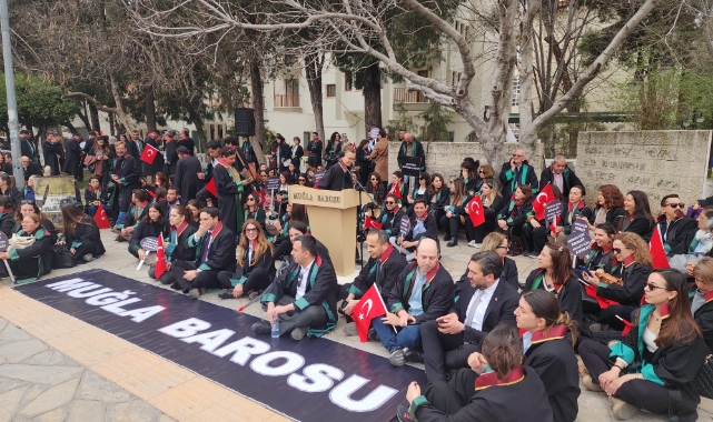 Muğla Barosu tarafından İstanbul Baro Yönetiminin görevden alınması ve son günlerde yaşanan olaylarla ilgili Muğla Barosu önünde toplanan onlarca Avukat Sınırsızlık Meydanına kadar yürüdükten sonra oturma eylemi başlattı.