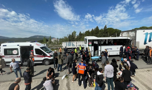 Kazada, ilk belirlemelere göre 4`ü ağır 34 kişi yaralandı. Bölgeye çok sayıda sağlık, itfaiye ve jandarma ekipleri geldi. Kazada yaralanan vatandaşlar ambulanslarla çevredeki hastanelere sevk edildi.