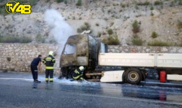 Muğla'da seyir halindeyken yanan tırda hasar oluştu.