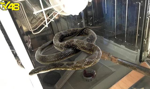 Muğla'nın Menteşe ilçesinde bir evin içindeki bulaşık makinesine giren yılan korku yaşanmasına sebep oldu.