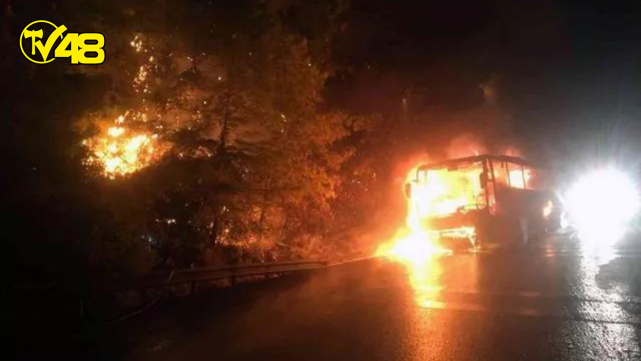 Muğla-Marmaris yolunda şehirlerarası yolcu otobüsü seyir halindeyken bir anda alev aldı. 38 yolcu şoför tarafından zamanında tahliye edilerek korkunç bir olayın daha yaşanması önlendi. Otobüs kullanılmaz hale gelirken, ormana sıçrayan yangında ormanlık alanda yaklaşık bir dönümlük alan da zarar gördü.