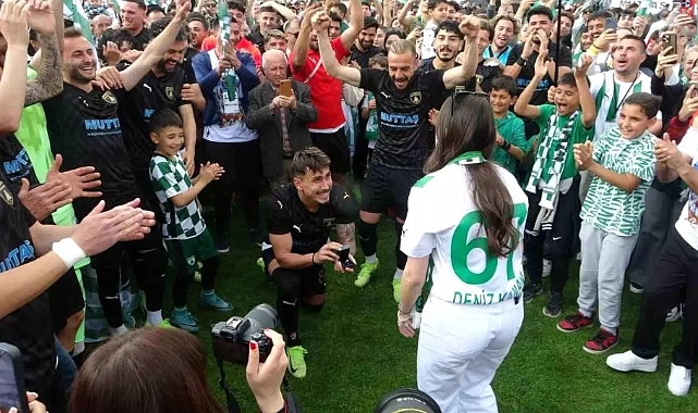 TFF 3. Lig'de şampiyonluk yaşayan Muğlaspor'un futbolcusu Furkan Demir, kız arkadaşı Deniz Kaman'a sürpriz bir şekilde evlenme teklif ederken, sürpriz teklif esnasında duygusal anlar yaşandı.
