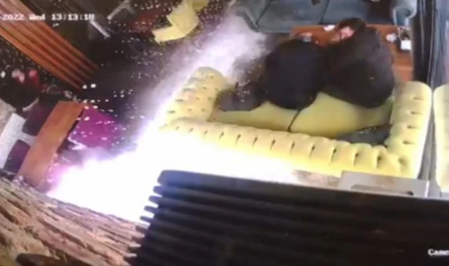 Muş'ta bir apartmanın çatısından düşerek kafeteryada oturan müşterilerin bulunduğu camdan içeriye giren kar kütlesi güvenlik kameralarına takıldı.
