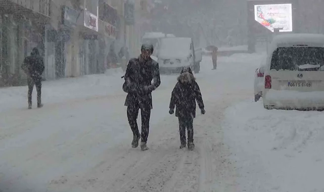 Muş'ta dün gece yeniden etkili olmaya başlayan kar yağışı kenti beyaz örtüyle kapladı.