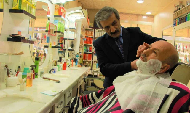 Müşterilerini 35 yıldır takım elbise ve kravatla tıraş ediyor