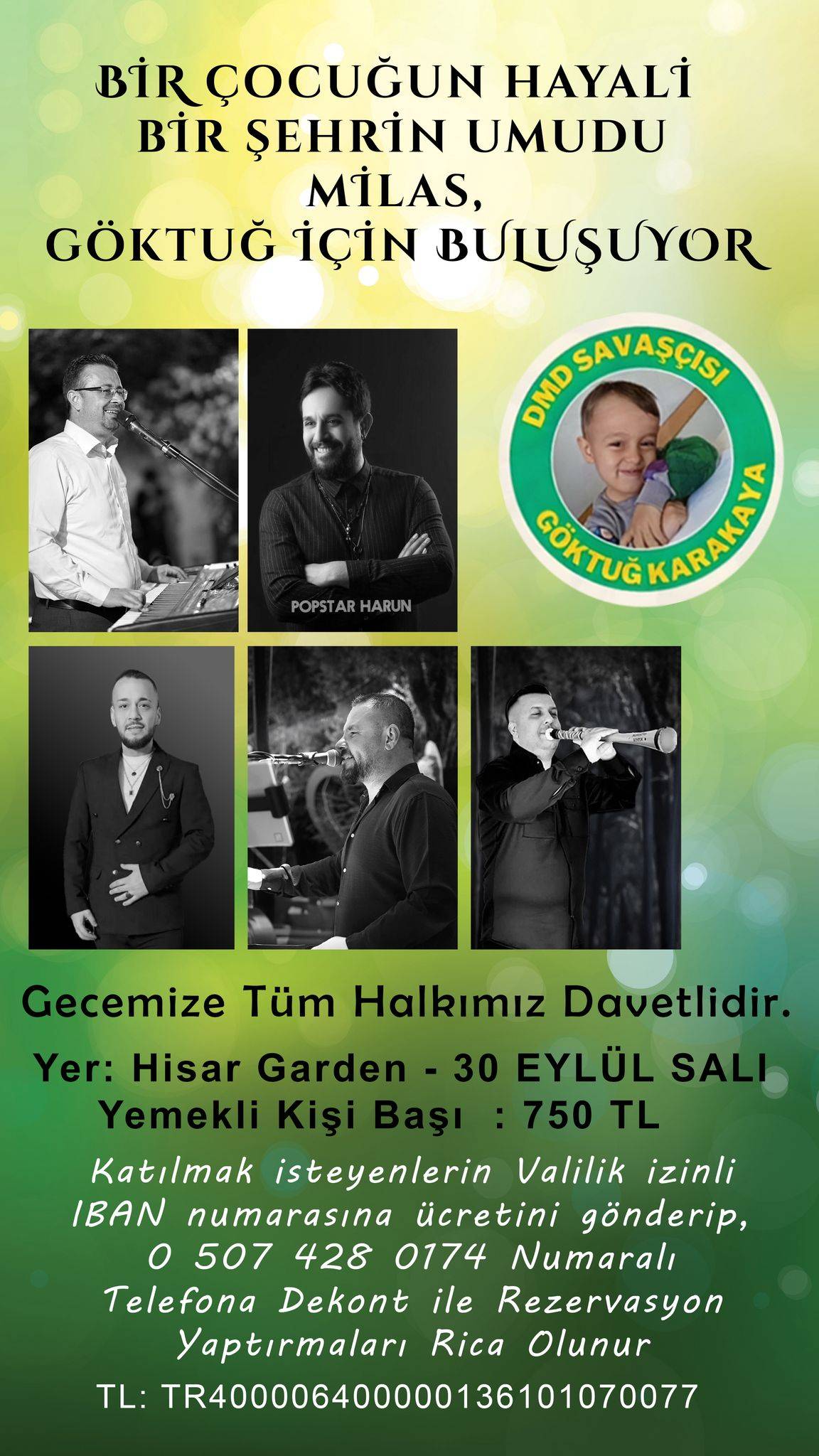Milaslı müzisyenler, DMD (Duchenne Musküler Distrofi) kas hastası olan küçük Göktuğ’un hayalini gerçeğe dönüştürmek için bir araya geliyor. Bir çocuğun hayali ve bir şehrin umudu etrafında birleşen bu anlamlı etkinlik, Milas halkını tek yürek olmaya çağırıyor.
