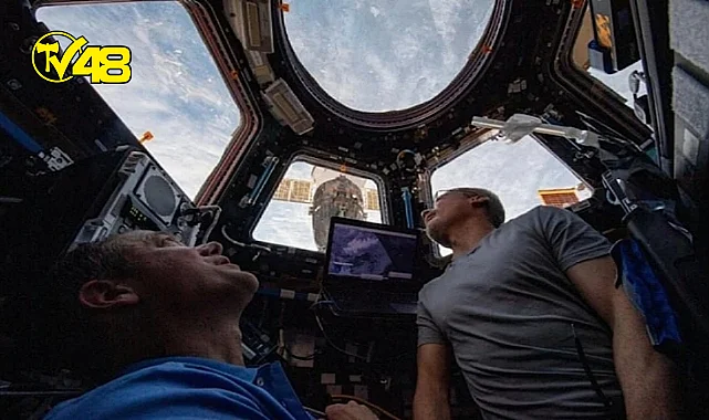 Astronotlar Thomas Marshburn ve Mark Vande Hei, istasyonun pencerelerinden Dünya’ya bakıyor.