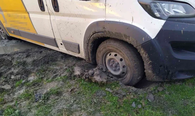 Avcılar'da navigasyonun yanlış yoldan yönlendirdiği kargo minibüsü çamura saplandı. Onu kurtarmaya gelen kamyon sürücüsü de çamura battı. Olduğu yerden çıkamayan iki araç kepçeyle kurtarıldı.