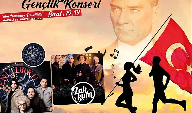 Nazilli Belediyesi, 19 Mayıs Atatürk'ü Anma, Gençlik ve Spor Bayramı'nın 103'üncü yıl dönümünde Nazillilileri ünlü müzik grupları Yeni Türkü ve Zakkum ile buluşturacak.