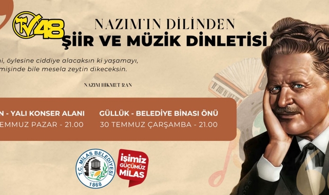 Nazım Hikmet Ran’ın hayatının anlatılacağı, şiirlerinin yorumlanacağı ve bestelenmiş şiirlerinin dinletisinin sunulacağı ‘Nazım Hikmet’i Anma Gecesi’ Ören Mahallesi’nde 27 Temmuz Pazar günü saat 21.00’de Yalı Konser Alanı’nda, 30 Temmuz Çarşamba günü ise Güllük’te saat 21.00’de Belediye Binası Önünde gerçekleşecek.