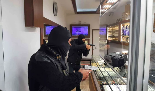 Bolu'da polis ekipleri tarafından yapılan kuyumcu soygunu tatbikatında film sahnelerini aratmayan görüntüler ortaya çıktı. Tatbikat gereği 3 soyguncu kısa sürede yakalandı.