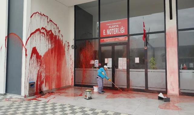 Antalya'nın Alanya ilçesine bağlı Mahmutlar Mahallesinde bulunan noter binasına boyalı saldırıda bulunuldu.