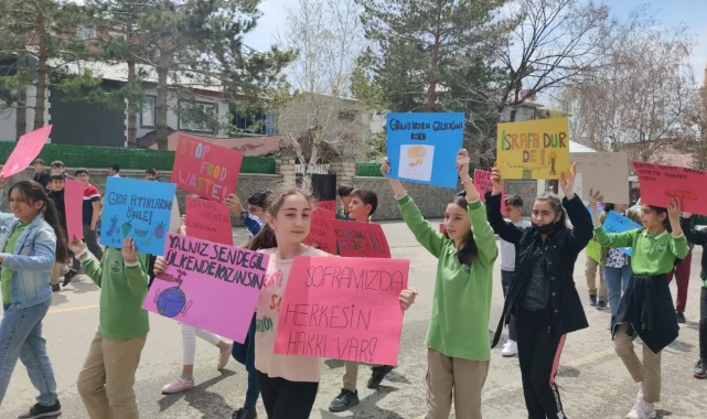 Aşkale İnkılâp İlköğretim Okulu öğrencileri yapılan israflara dikkat çekmek için ilçe merkezinde bir yürüyüş yaptı.