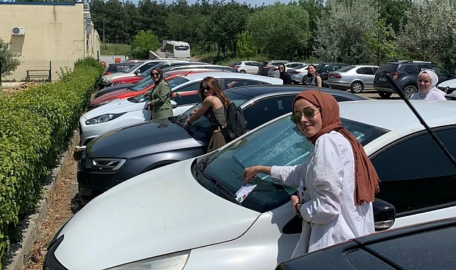 Bursa Uludağ Üniversitesi (BUÜ) Teknik Bilimler Meslek Yüksekokulu İş Sağlığı ve Güvenliği programı öğrencileri, Görükle Kampüsü içerisinde aracını uygun park etmeyen sürücüleri uyararak hazırladıkları el broşürlerini dağıttı.