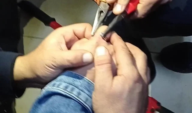 Öğrencinin parmağına sıkışan yüzüğü itfaiyeciler keserek çıkardı