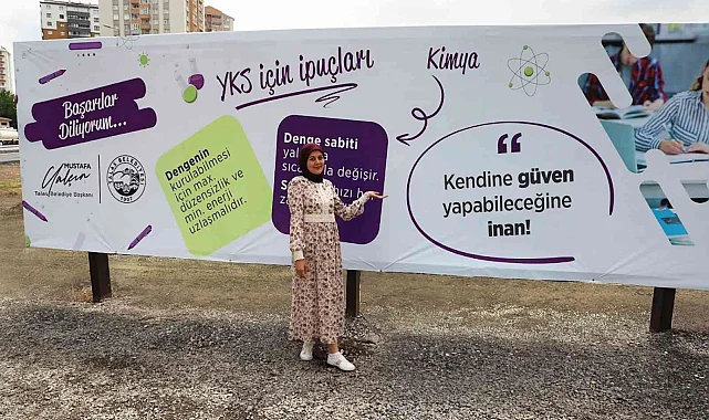 18 Haziran Cumartesi günü yapılacak Temel Yeterlilik Testi (TYT) ve 19 Haziran Pazara günü gerçekleşecek olan Alan Yeterlilik Testi (AYT) öncesi ilçede bulunan billboardlarda adaylara başarılar dileyen Başkan Yalçın, farklı bir uygulamaya da imza atarak sınavdan çıkabilecek konulardan bazı ipuçları paylaştı.