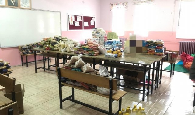 Öğretmen ve öğrencilerden ihtiyaç sahiplerine gıda yardımı