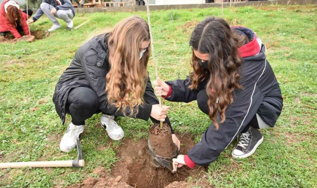 Merkezefendi Filiz Abalıoğlu Anadolu Lisesi bahçesine oluşturulan alanda yaklaşık 200 çeşitli ağaç fidanı toprakla buluştu.