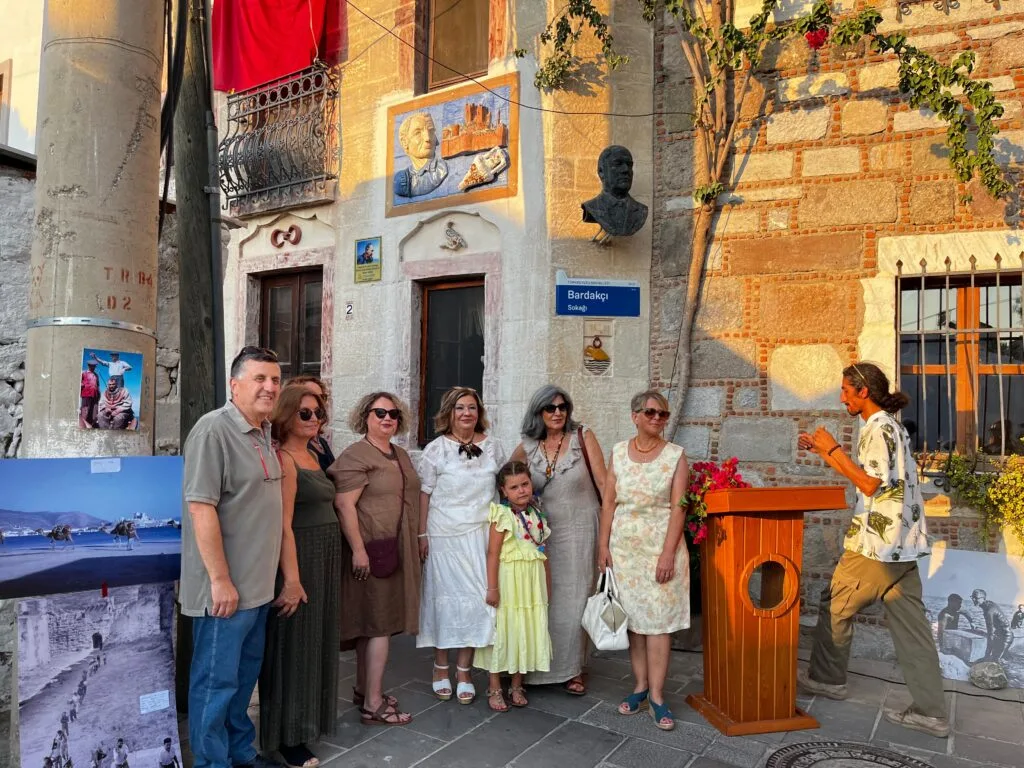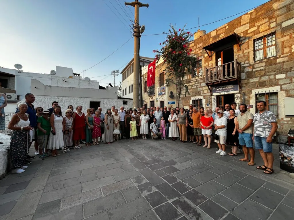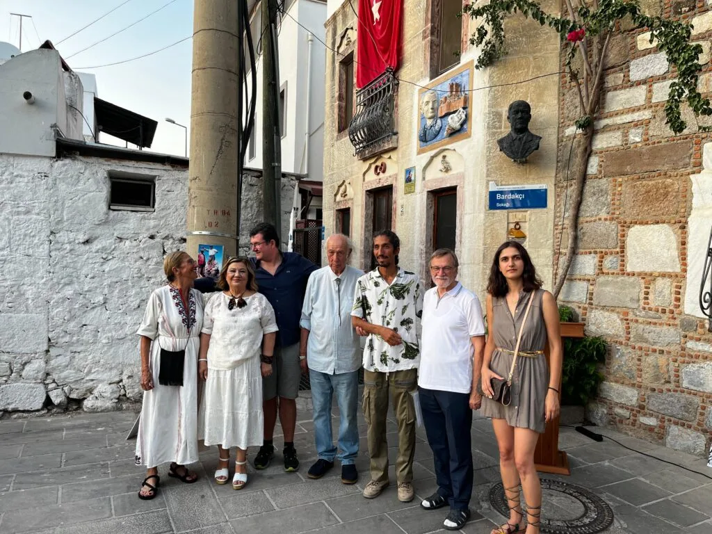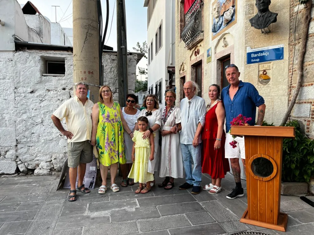 Yaklaşık 80 kişinin katıldığı buluşmada, Seramik Sanatçısı Pervin Özdemir’in Bodrum Kalesi, Oğuz Alpözen silüeti, amfora ve deniz figürlerini işlediği seramik kabartma, Alpözen’in kuşlu evinin dış duvarına kalıcı olarak yerleştirildi.