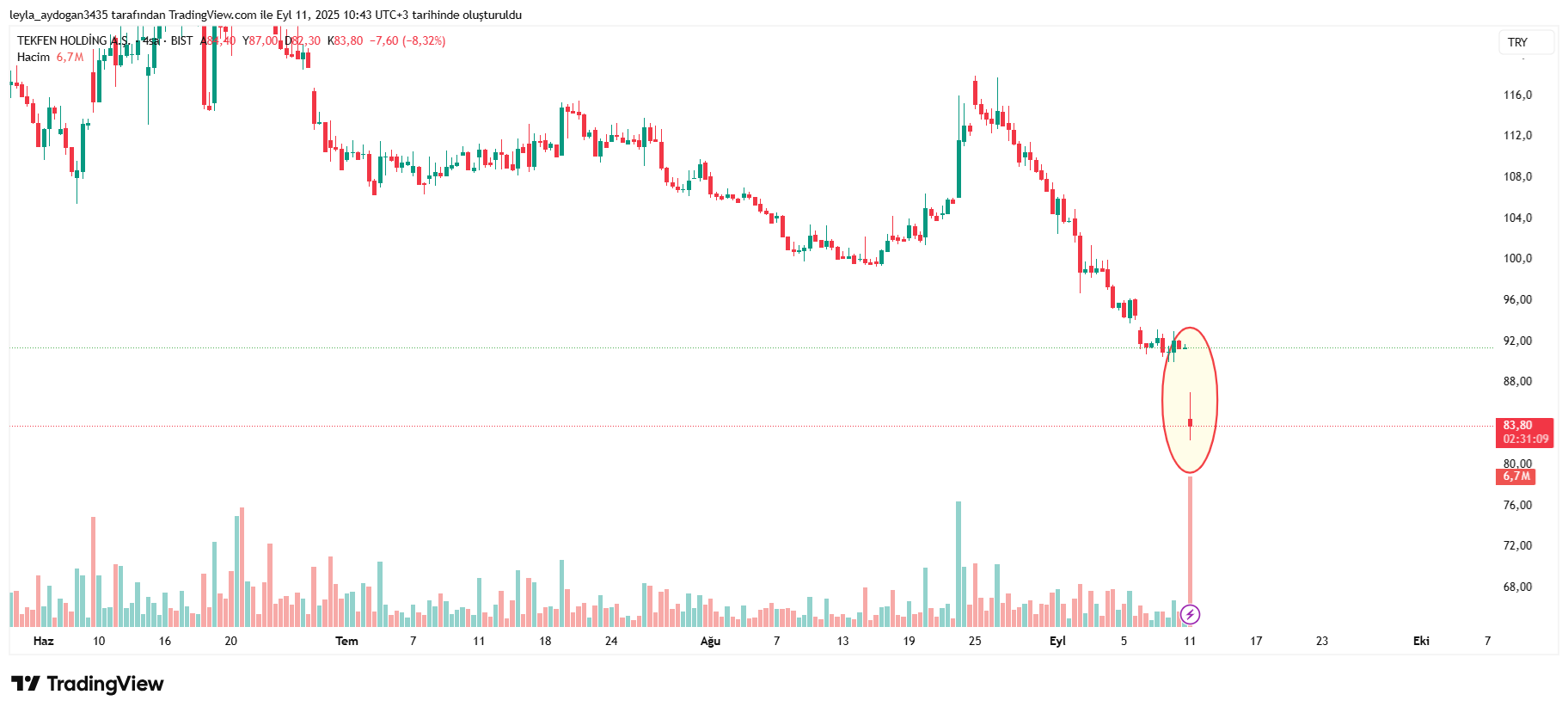 Dünü 91,40 seviyesinde tamamlayan şirket operasyonların ardından 82,40 seviyesine kadar geriledi. Şirketin 4 saatlik grafiği incelendiğinde; hacimde satışların hız kazanırken GAP'lerin meydana geldiği görülüyor.