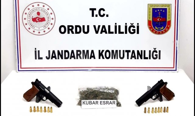 Ordu İl Jandarma Komutanlığı tarafından uyuşturucu madde ile mücadele kapsamında yapılan çalışmalar sonucu Gülyalı ilçesinde yapılan bir operasyonda 150 gram kubar esrar maddesi, 2 adet ruhsatsız tabanca ve 15 adet tabanca fişeği ele geçirildi.