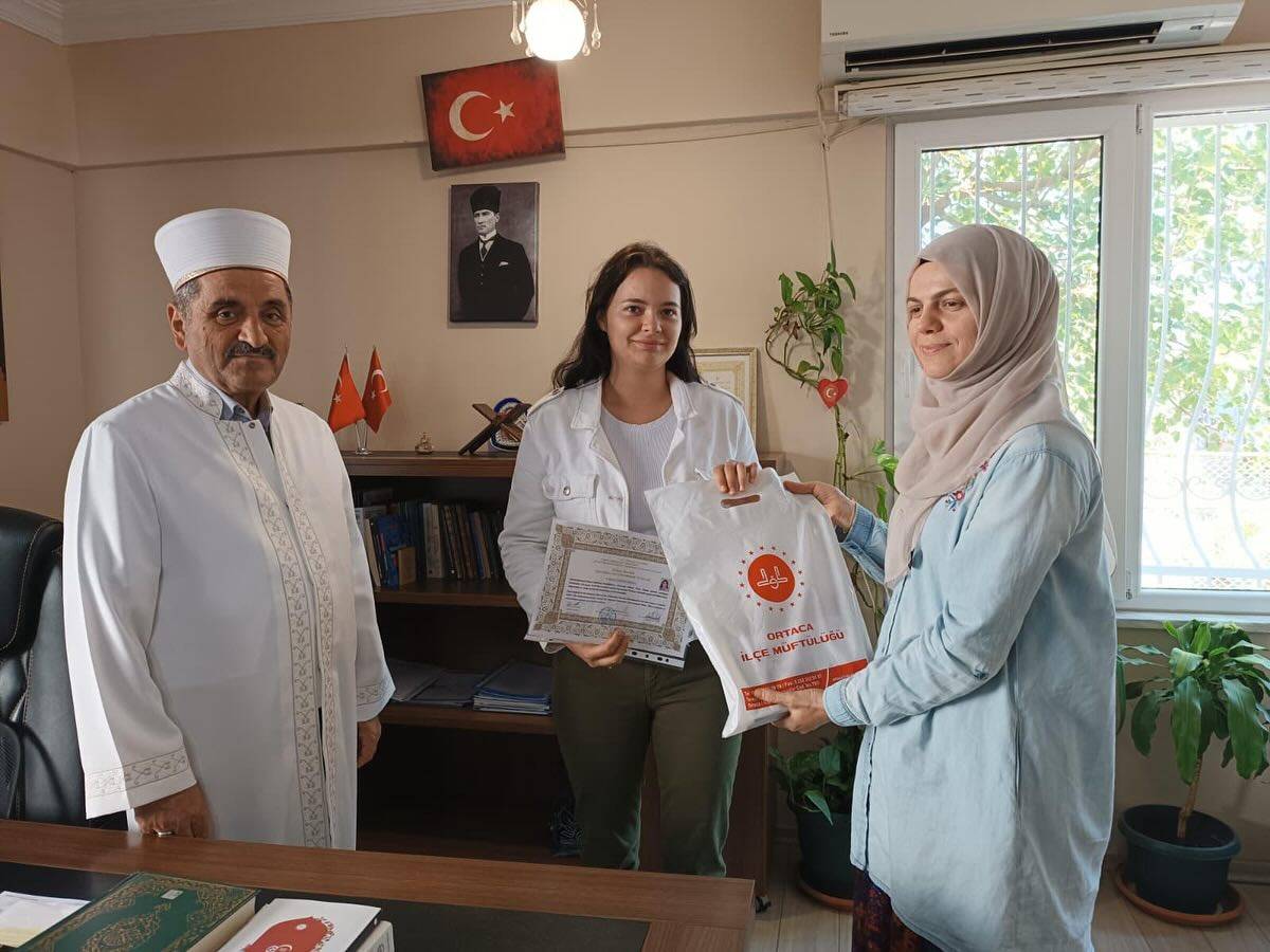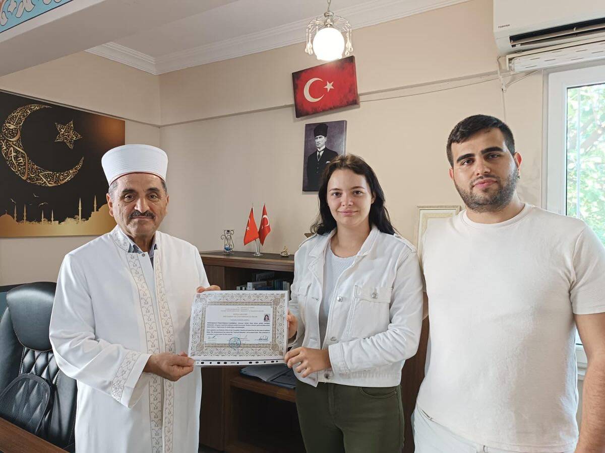 Törenin sonunda Müftü Mahmut Atıcı, Vladlena’ya ihtida belgesi, Kur’an-ı Kerim ve temel dini bilgileri içeren çeşitli kitaplar takdim etti. Atıcı, İslam’ı seçen bireylere yönelik manevi destek ve rehberlik hizmetlerinin sürdüğünü belirterek,