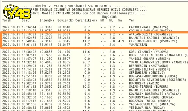 Kandilli rasathanesinden edinilen bilgiye göre Osmaniye'de 5.0 büyüklüğünde deprem meydana geldi şehri illerden ve hissedilen deprem korkuttu.