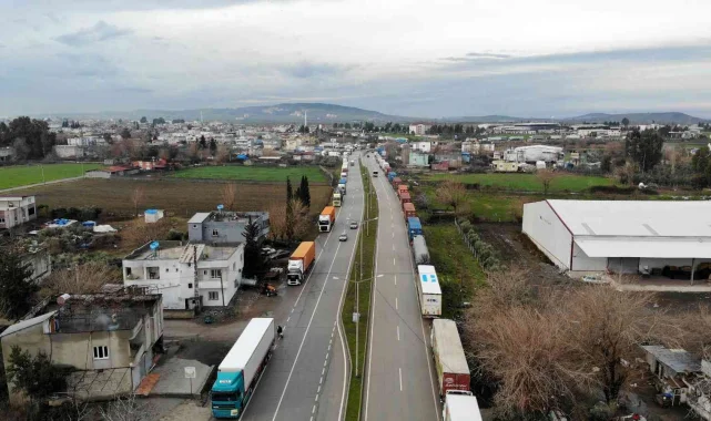 Osmaniye gişelerinde oluşan tır kuyruğu havadan görüntülendi