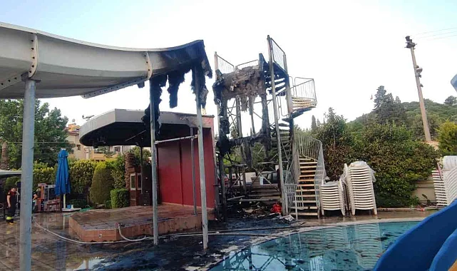 Muğla'nın Marmaris ilçesinde bir otelin havuz başındaki kaydırakta çıkan yangında kaydırak kullanılamaz hale geldi.