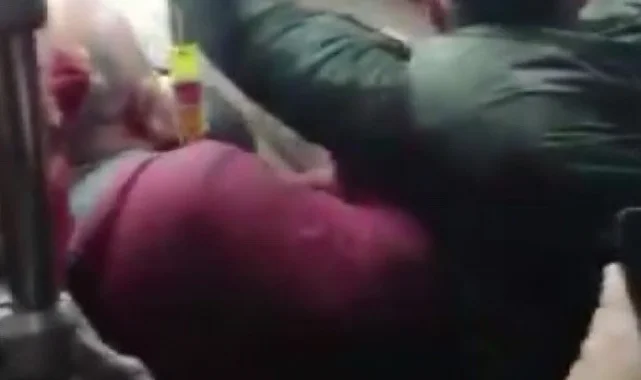 Otobüste, çocukları oturdukları yerden kaldırma nedeniyle çıkan yumruklu kavga, cep telefonu kamerasına yansıdı.