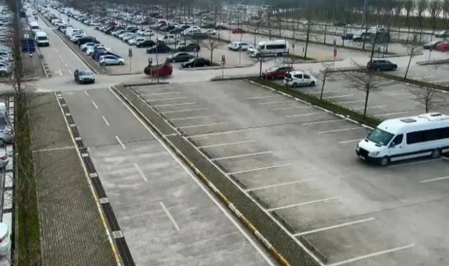 Otoparkta kazaya karışan otomobilin takla atma anı kamerada