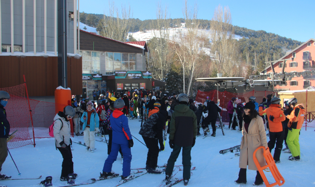 Pistleri dolduran yerli ve yabancı turistler, güneşli havada kayak yapmanın keyfini çıkarttı.