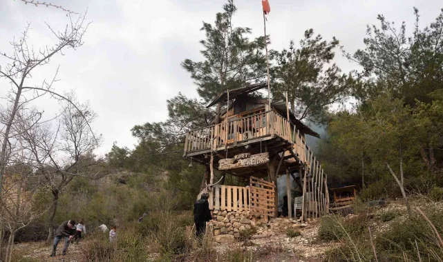 Yaz-kış hafta sonlarını ağaç evde geçiriyor